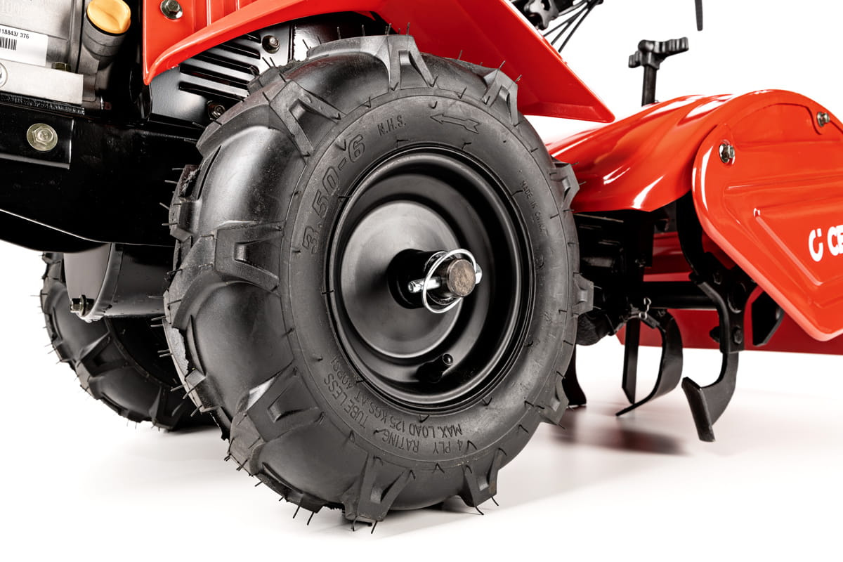 - Napęd na koła: Niezależny napęd na koła ułatwia prowadzenie glebogryzarki, zmniejszając wysiłek potrzebny do jej obsługi.
