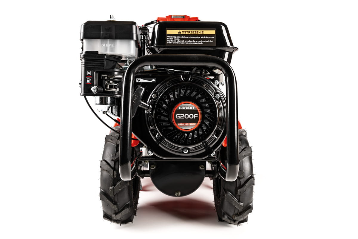 - Silnik o wysokiej mocy: Silnik spalinowy Loncin o pojemności 196 cm³ i mocy 5,5 KM zapewnia niezawodność i moc niezbędną do pracy na dużych powierzchniach.