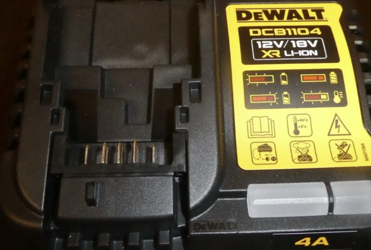 Uniwersalna ładowarka do litowo-jonowych akumulatorów Dewalt DCB1104, z prądem ładowania 4 A