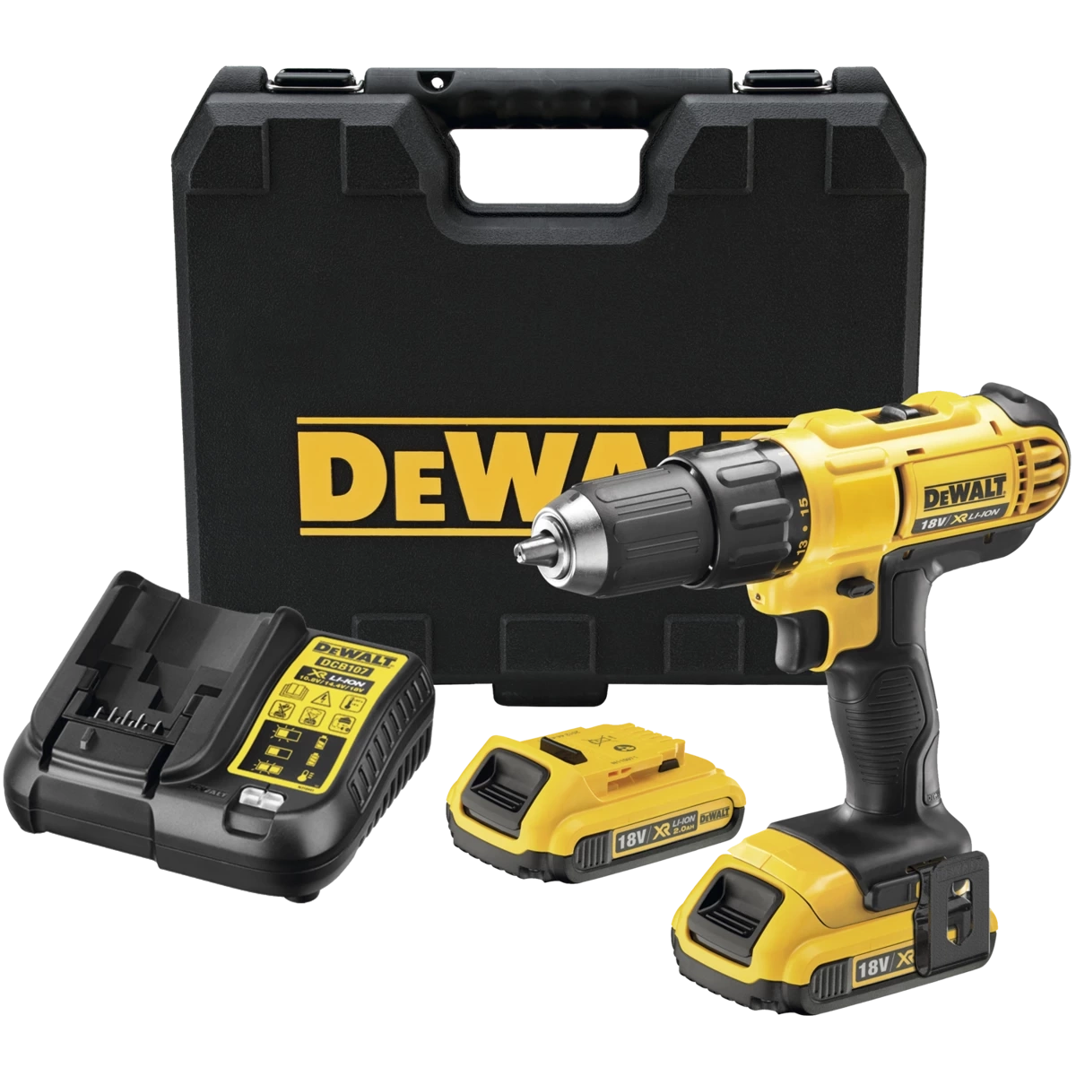 Zestaw zawiera dwa akumulatory 18V XR o pojemności 2,0 Ah oraz ładowarkę, co zapewnia dłuższą pracę bez przerw. Całość zapakowana jest w solidną walizkę z tworzywa, która ułatwia transport i przechowywanie sprzętu.