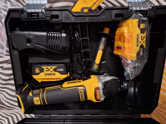 Szlifierka kątowa DeWalt DCG405P2 to wydajna, bezprzewodowa szlifierka kątowa z serii Dewalt 18V XR. Narzędzie posiada mocny bezszczotkowy silnik, zapewniający prędkość, do 9000 obr/minutę i wydajną obsługę tarcz, do 125 mm. Urządzenie w wariancie wyposażenia Dewalt DCG405P2-QW dostarczane jest wraz z zestawem zasilającym, składającym się z dwóch akumulatorów i ładowarki, wraz z walizką systemową TSTAK - umożliwiającą łatwe i bezpieczne przechowywanie.