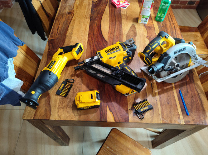 W zestawie, zgodnie z informacją do producenta - pilarka DCN570N dostarczana jest wraz z tarczą do cięcia drewna o 24 zębach. Narzędzie współpracuje z akumulatorami 18V, jednakże zbyt małe akumulatory, jak 2,0 Ah, mogą nie zapewniać wystarczającej mocy i bardzo krótki czas pracy. Zalecane są baterie powyżej 3,0 Ah