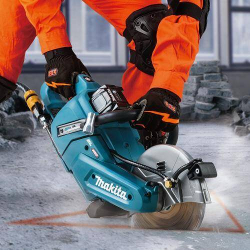 Przecinarka do betonu Makita CE003GZ to zaawansowane narzędzie zaprojektowane z myślą o profesjonalistach, którzy wymagają precyzyjnego i wydajnego cięcia betonu. Urządzenie zostało wyposażone w bezszczotkowy silnik zasilany z akumulatora 36V, co zapewnia dużą moc oraz dłuższy czas pracy na jednym ładowaniu. Zastosowanie technologii XGT 40V max oznacza kompatybilność z najnowszymi akumulatorami Makita, oferując maksymalną wydajność nawet w najbardziej wymagających warunkach.