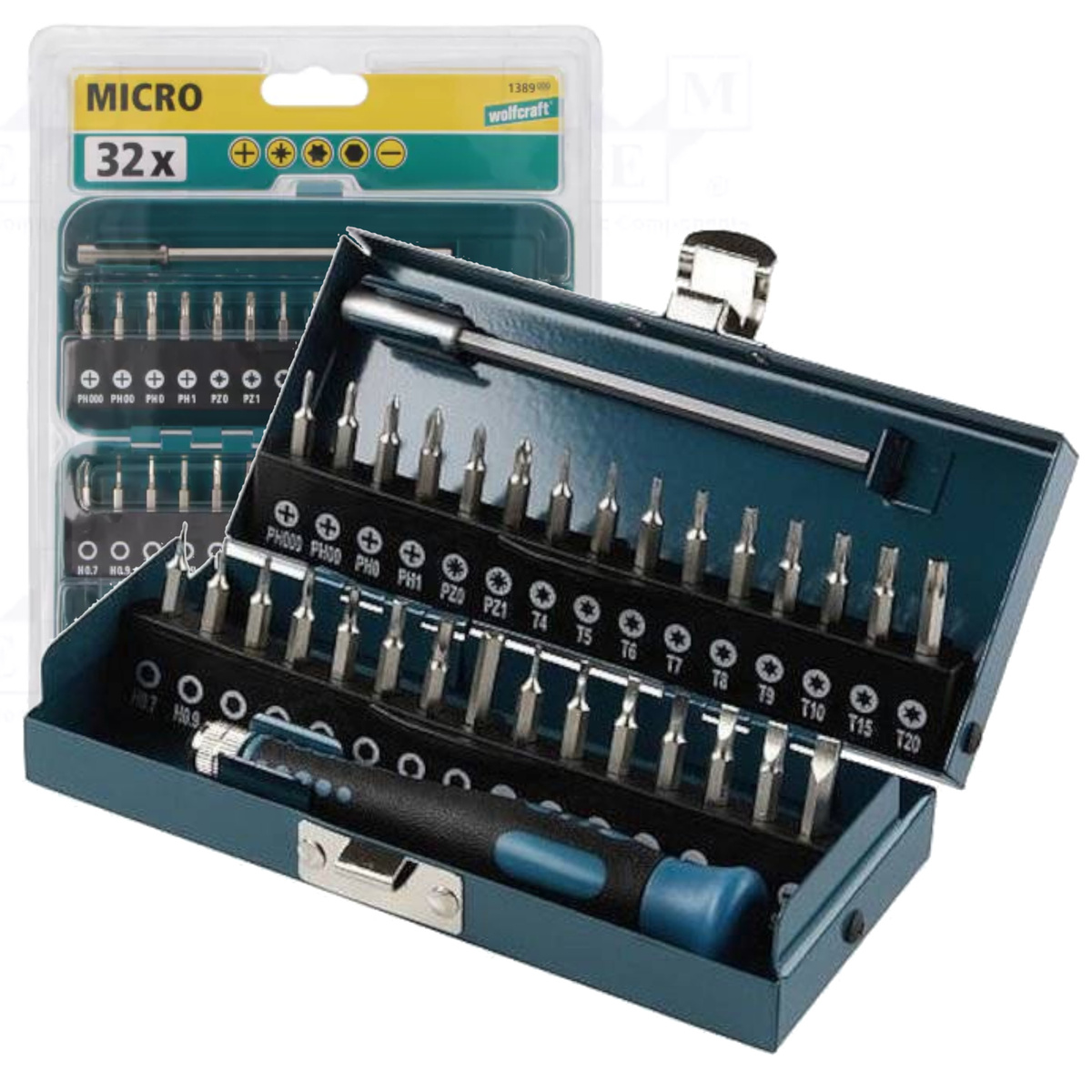 - Zestaw bitów MICRO Wolfcraft [32 cz.] WF1389000 Jest to zestaw bitów do prac precyzyjnych. Maksymalna długość wkrętaka wraz z adapterem wynosi 200 mm. Zestaw znajduje się w metalowej walizce.