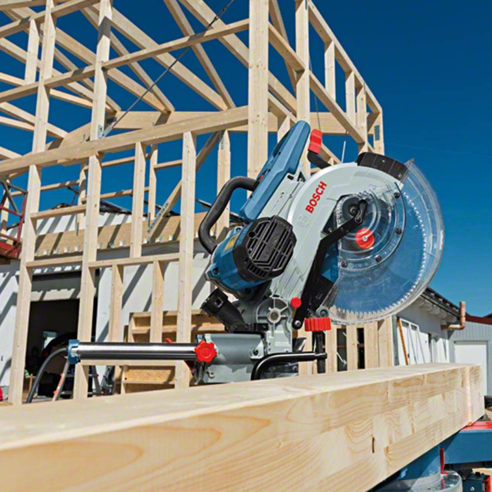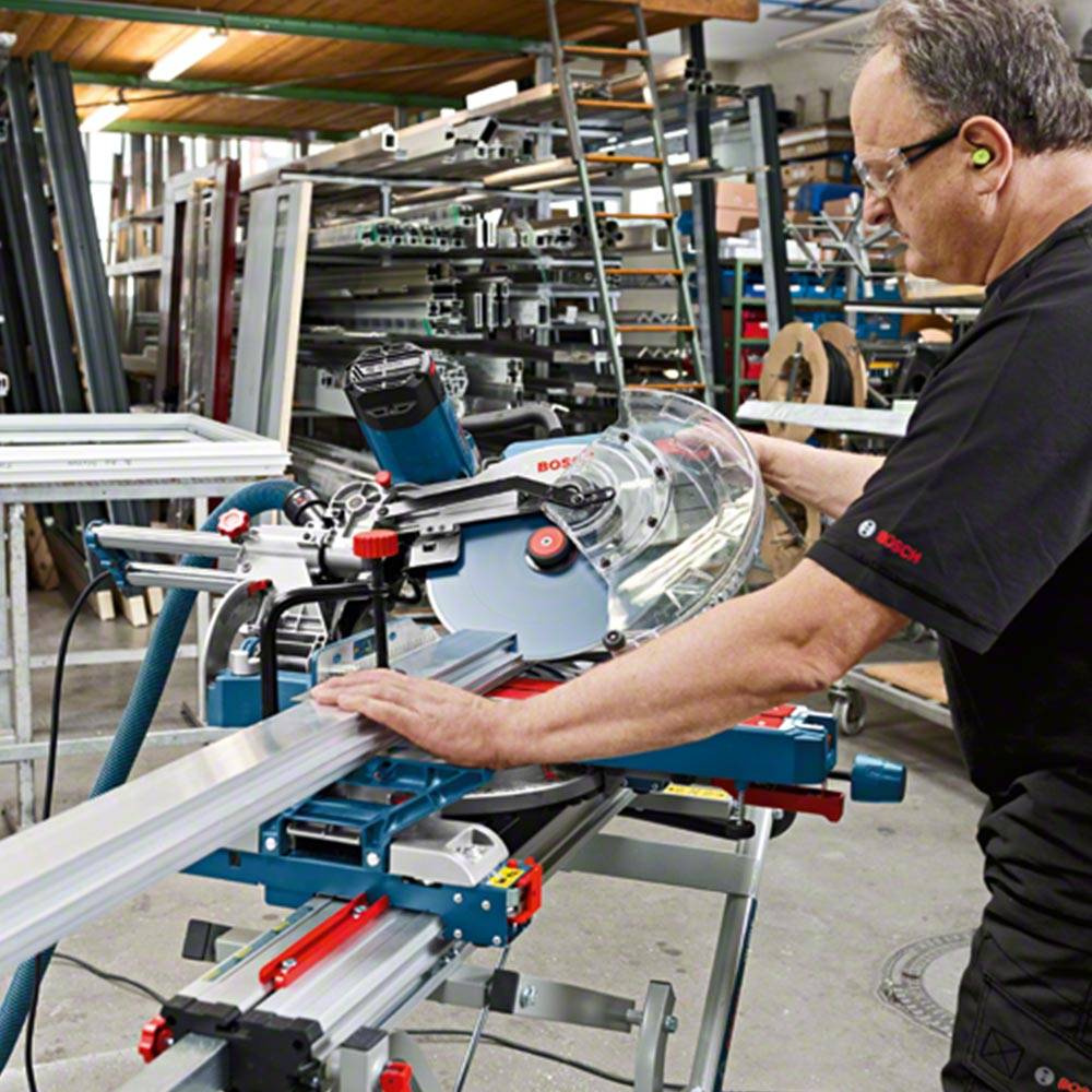 Ukośnica Bosch GCM 12 SDE to narzędzie przeznaczone do przecinania i docinania różnego rodzaju materiałów. Za jej pośrednictwem w łatwy sposób można przyciąć na wyznaczoną odległość kantówki, listwy przypodłogowe, ramy obrazów, panele podłogowe, deski i wiele, wiele innych. Stosując odpowiednie tarcze możliwe jest cięcie cienkościennych arkuszy blachy oraz tworzywa sztucznego. Z racji niewielkich gabarytów ukośnica z powodzeniem może służyć jako podstawowe narzędzie do przycinania w pracy mobilnego montera, budowlańca lub pracowania remontowo-wykończeniowego. Bosch GCM 12 SDE charakteryzuje się silnikiem o mocy 1800W, który pozwala na pracę w najcięższych warunkach.