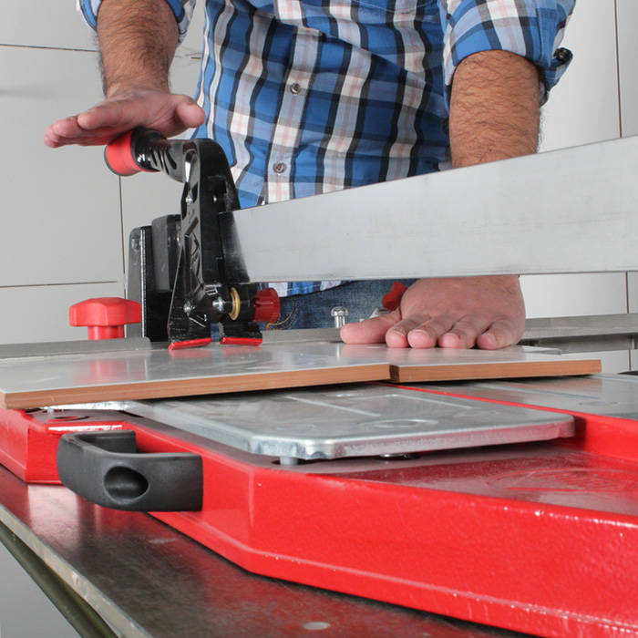 - Siła nacisku podczas pracy sięga do 1000kg, pracuje się poprzez ruch do siebie, gwarantuje to precyzyjne oraz szybkie przecinanie płytek o grubości 5-20mm