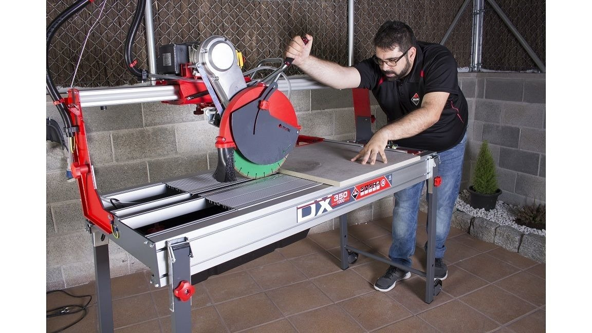 • Elektryczna przecinarka DX-350 N LASER&LEVEL Rubi 52919 wyposażona w ruchomą głowicę umożliwiającą wykonywanie cięć wgłębnych