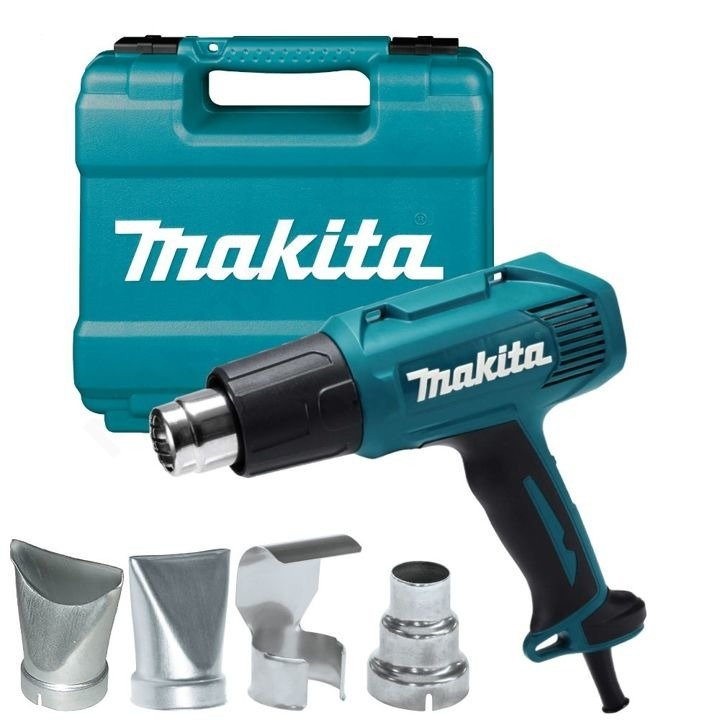 - Opalarka Makita HG6030K, Moc znamionowa: 1800 W, Średnica dyszy - 34,5 mm, Moc grzewcza regulowana wygodnym w obsłudze przełącznikiem ślizgowym,