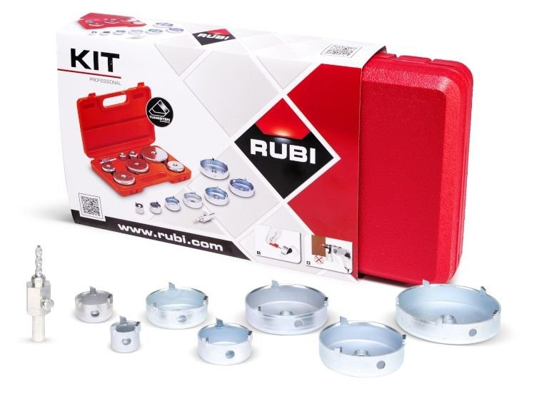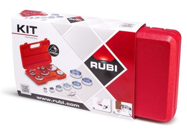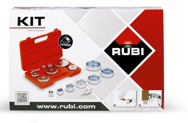 - Zestaw wierteł Rubi 04995 składa sie z wiertła centrującego oraz wierteł o średnicy 27, 35, 45, 55, 65, 70 i 85 mm