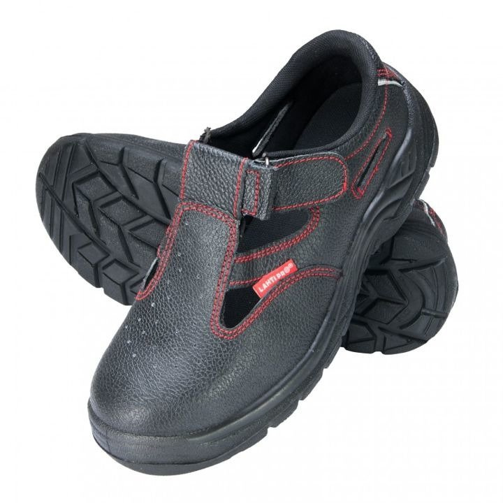 - Sandały robocze męskie Lahti PRO LPSOMA46, Materiał: wierzch: skóra, podszewka: dzianina siatkowa, wyściółka: wymienna, Rozmiar: 46, Kategoria bezpieczeństwa: S1 SRC, Norma: ISO 20345: 2011, Właściwości: antyelektrostatyczne, antypoślizgowe