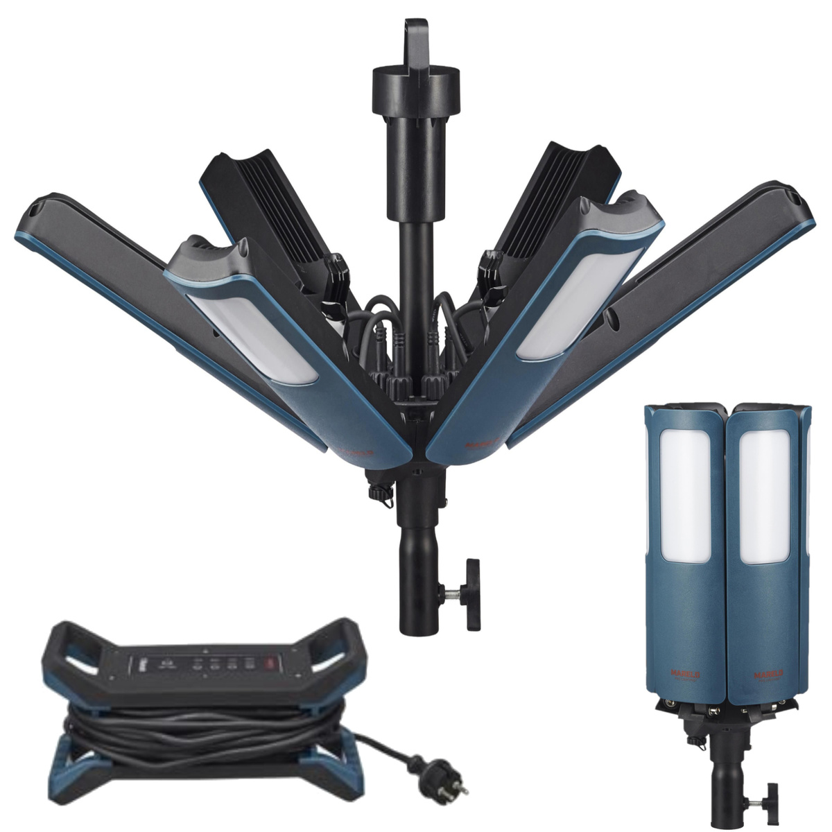 Lampa robocza Mareld Starburst 16000 APP 690000633 przez producenta określana jest jako przykład najpotężniejszego oświetlenia. Składa się ono z sześciu źródeł światła, które można nachylać w różnorodnych pozycjach – zależnie od tego, jaki obszar ma zostać oświetlony i pod jakim kątem. Dziesięciometrowy kabel zwiększa zasięg, a także komfort wykonywanej pracy. Lampa robocza Starburst 16000 APP 690000633 Mareld może być zawieszona na uchwycie u góry lub osadzona na statywie Stand Beam. Zastosowanie matowego szkła sprawia, że światło idealnie się rozprasza i nie jest oślepiające. Lampa posiada także moduł sterujący i specjalnie przygotowaną aplikację na telefony komórkowe, która umożliwia sterowanie z wykorzystaniem następujących opcji: włączenie, wyłącznie, regulowanie natężenia światła oraz ustawienie czasomierza. Lampa robocza Starburst 16000 APP 690000633 Mareld zapewnia aż 16000 lm oraz wykorzystuje napięcie 220-240 V. Ochrona IP54 to częściowe zabezpieczenie przed pyłem i częściowe przed wodą.