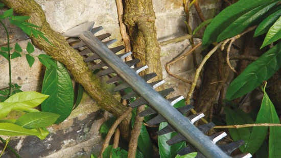 - Narzędzie ma listwę z funkcją piłowania. Zęby w jej przedniej części bez problemu tną gałęzie o średnicy do 32 mm.