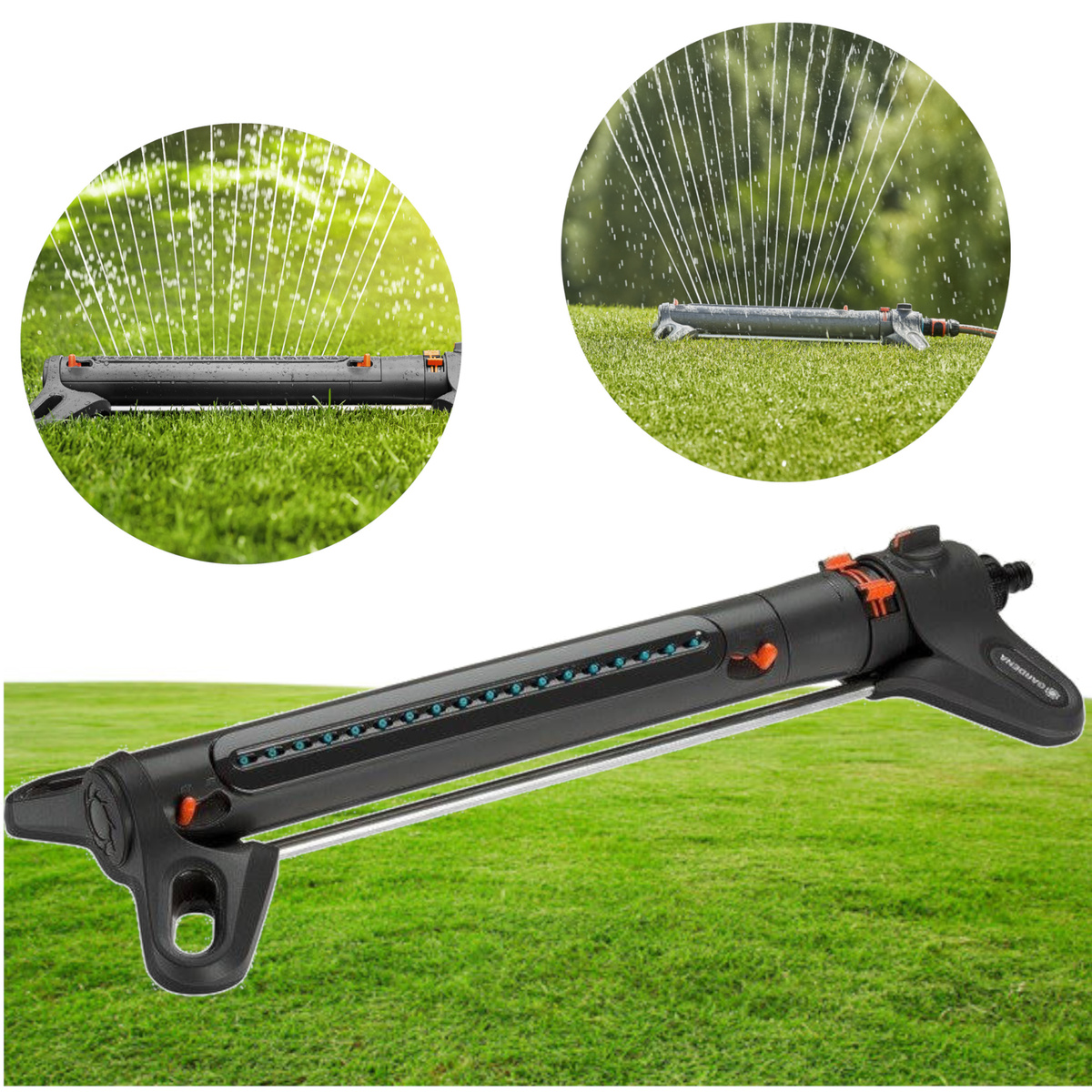Zraszacz wahadłowy AquaZoom L 18714-20 Gardena jest przykładem na to, że trawnik może być niezwykle precyzyjnie i skutecznie nawadniany. Proces też ma miejsce na terenie w zakresie od 28 do 350 m². Równomierność działania sprawia, że nie tworzą się niepożądane kałuże. Wykorzystanie suwaka pozwala ustawić zasięg w przedziale od 7 do 21 metrów, natomiast szerokość zraszania wynosić może od 4 do 17 m. Możliwe jest także nawadnianie, które będzie dostarczać wodę do wybranego terenu z jednej strony.