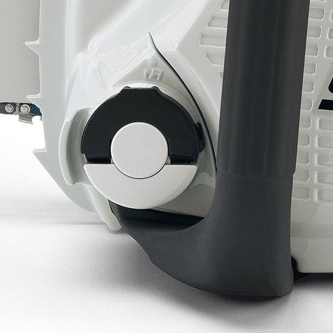 Dla komfortu użytkownika akumulatorowa pilarka MSA 160 C-B, 1250 200 0115 Stihl ma usprawniony sposób napinania piły łańcuchowej. System STIHL (B) umożliwia sprawne napięcie mechanizmu bez użycia dodatkowych narzędzi – wystarczy poluzować pokrywę koła napędowego, a resztą zajmuje się koło nastawcze. Kolejnym wartym uwagi elementem jest przezroczysty zbiornik oleju, dzięki któremu w szybki sposób można określić poziom zawartego w nim płynu.