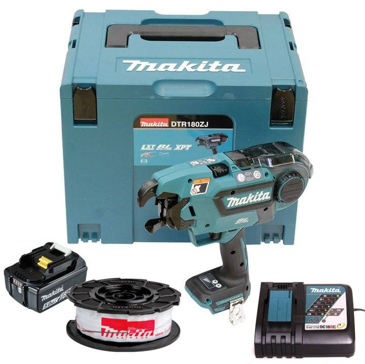 Super Zestaw: Wiązarka do zbrojeń Makita DTR180ZJ + akumulator 18V 5Ah Li-ion + szybka ładowarka DC18RC + drut do wiązania 50 rolek - kup tanio i bezpiecznie w Domitech