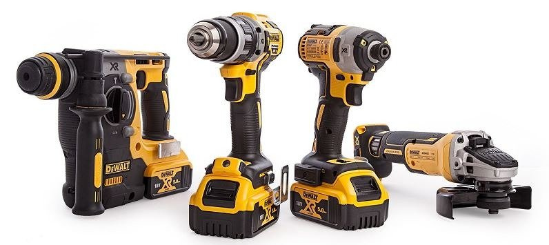 Zestaw DCK422P3 DeWalt: akumulatorowa szlifierka kątowa DCG405, akumulatorowa młotowiertarka SDS-Plus DCH273, akumulatorowa wiertarko-wkrętarka DCD796, akumulatorowa zakrętarka udarowa DCF887 z trzema akumulatorami, ładowarką i trzema kuframi. Te i inne sprawdzone urządzenia akumulatorowe znajdziesz w Sklep i Serwis Elektronarzędzi Domitech Bydgoszcz.