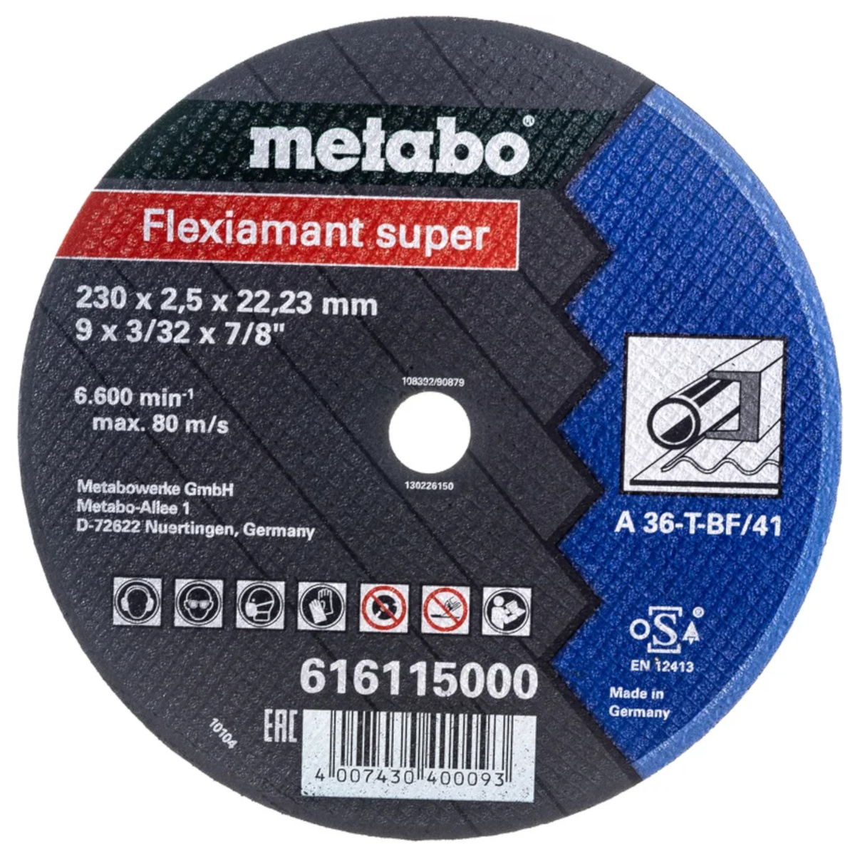 - Tarcza tnąca do stali METABO Flexiamant SUPER 616115000. Wymiary: 230 x 2.5 x 22.23 mm. Maksymalna prędkość obrotowa: 6600 /min