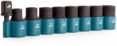 - Zestaw nasadek udarowych 8-18 mm 9 elementów B-54645 Makita. Ilość nasadek: 8 szt. Adapter nasadek 1/2 do uchwytu sześciokątnego 1/4 dł. 50 mm. Rozmiary nasadek: 8x38/10x38/12x38/13x38/14x38/15x38/17x38/18x38 mm