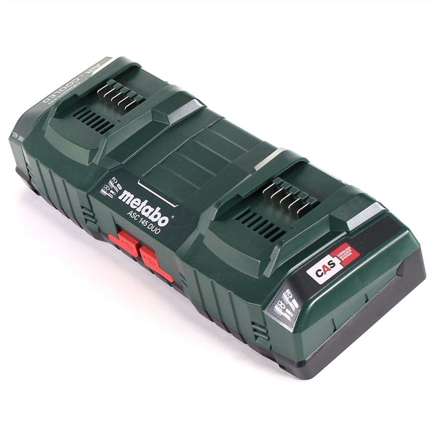• Szybka ładowarka podwójna ASC 145 DUO 627495000 Metabo. Napięcie akumulatora: 12 - 36 V. Napięcie zasilania: 220 - 240 V. Częstotliwość sieci: 50 - 60 Hz. Maks. prąd ładowania: 8 A. Moc wyjściowa: 145 W. Czas ładowania 18 V/4,0 Ah/18 V/8,0 Ah: 30/60 min.