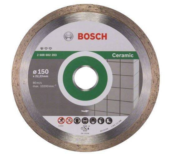 - Bosch Diamentowa tarcza tnąca 150 Standard for Ceramic 2608602203. Średnica zewnętrzna: 150 mm. Średnica wewnętrzna: 22,23 mm. Obrzeże: ciągłe. Sposób cięcia: na sucho.