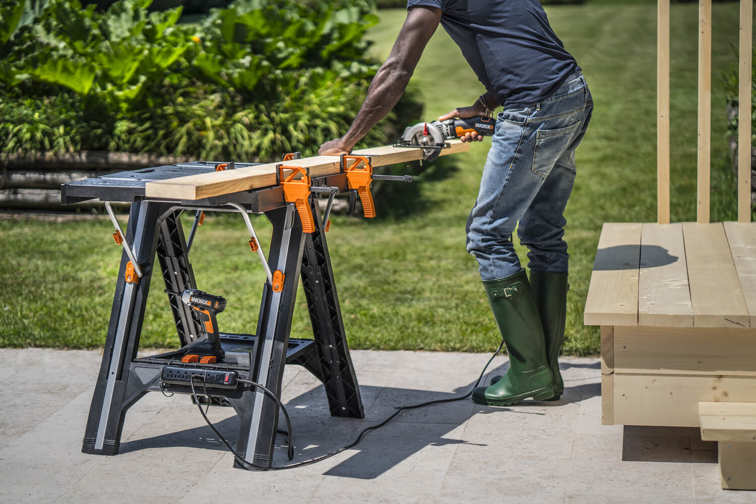 - Możliwość łączenia z innymi stołami Worx Pegasus