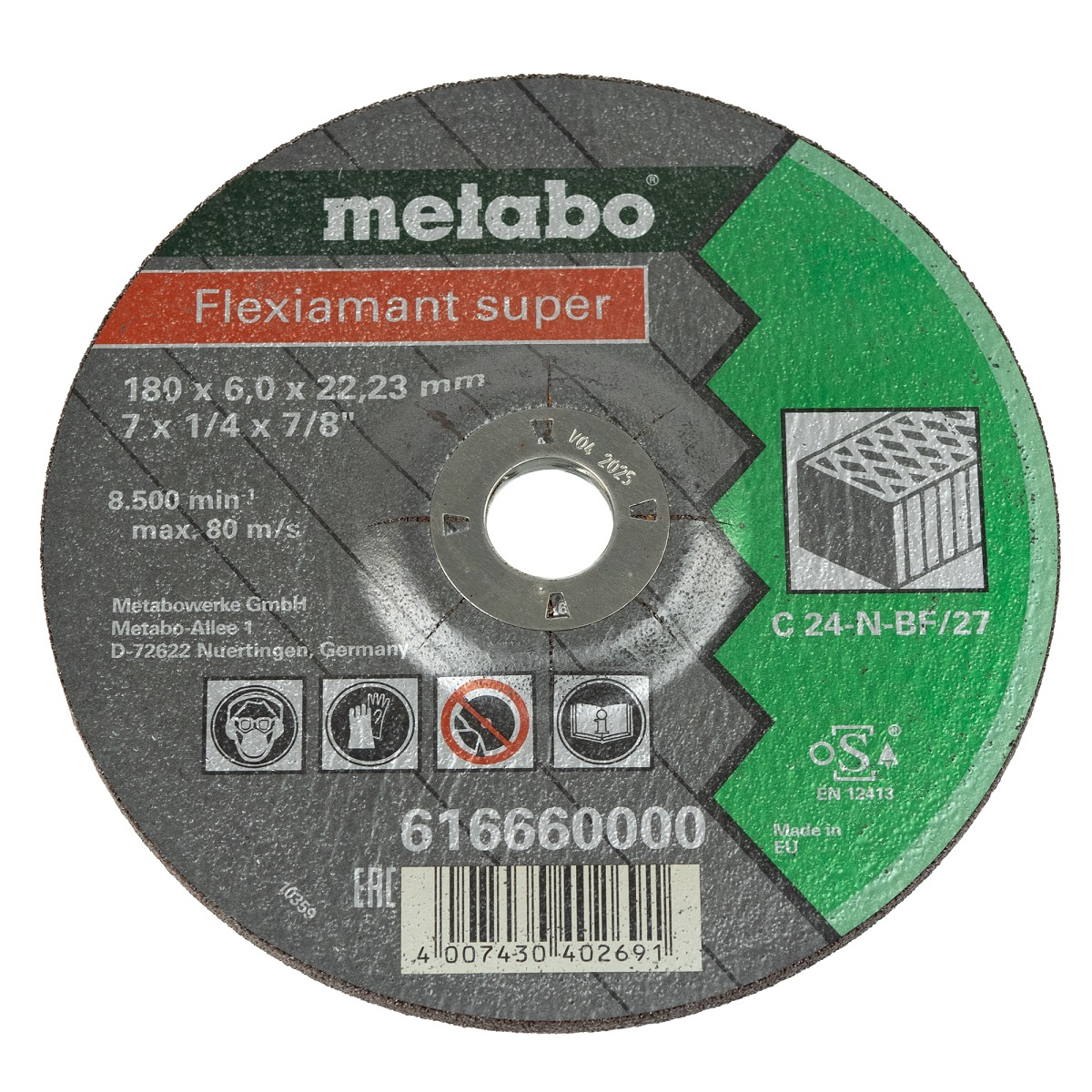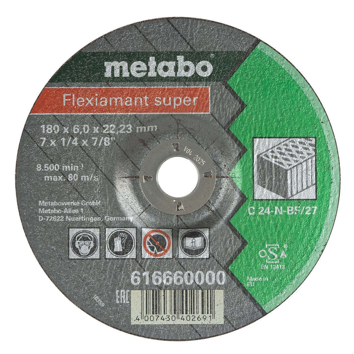 - Tarcza do szlifowania kamienia 180 mm 616660000 Metabo. Klasa jakości: C 24-N. Średnica x grubość x otwór: 180 x 6 x 22.23 mm. Wykonanie: odgięty. Maksymalna prędkość obrotowa8500 /min. Maksymalna prędkość robocza 80 m/s.