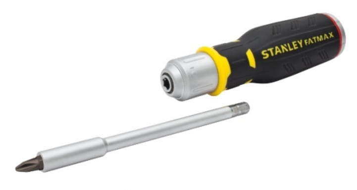Wkrętak z grzechotką i kompletem 12 końcówek wkrętakowych FMHT0-62690 Stanley to wygodny wkrętak (śrubokręt) wyposażony w grzechotkę, dzięki któremu wkręcanie jest bardzo szybkie i wygodne dla obsługującego narzędzie. Trój pozycyjna grzechotka z możliwością zablokowania, kręcenia w lewo i prawo pozwala na dokręcanie śrub z dużym momentem obrotowym. Rękojeść posiada wewnątrz magazynek na bity a ponad to została pokryta na swojej zewnętrznej stronie gumowym materiałem, dzięki któremu ręka nie ślizga się podczas pracy.