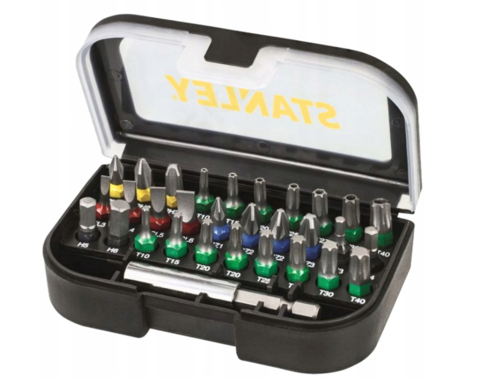 - Zestaw końcówek wkrętakowych bitów 31 sztuk STA60490-XJ Stanley. Sztuk: 31. Philips: 3szt. Pozidrive: 4szt. Płaskie: 4szt. HEX: 4szt. Torx: 8szt. Trzpieniowe: 7szt. Adapter, przedłużka 60 mm: 1szt.