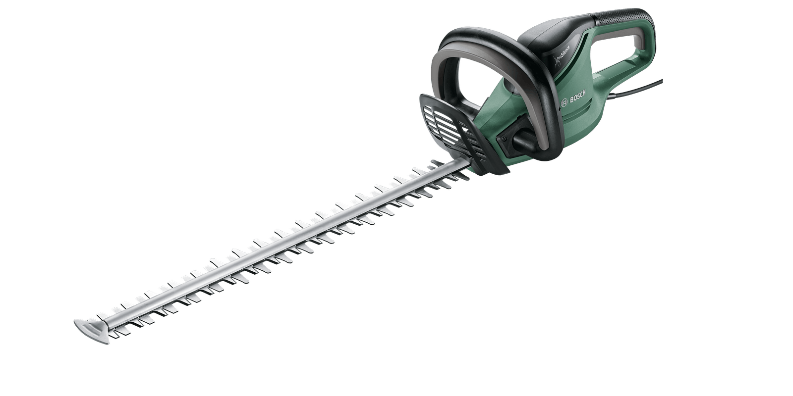 Nożyce do żywopłotu Universal Hedge Cut 50 Bosch 06008C0500 wykorzystuje technologię ProSilence zapewniając wysoką wydajność i niższy o 80% poziom hałasu wynoszący maksymalnie do 91 dB(A). Ostrze tnące Bosch 06008C0500 ma długość 500 mm, a odstęp pomiędzy nożami wynosi 26 mm umożliwiając dokładne i szybkie cięcie nawet grubszych gałęzi. Wydajny silnik nożyc 06008C0500 posiada 480 W mocy i wysoką skuteczność cięcia zapewniają imponujący rezultat.