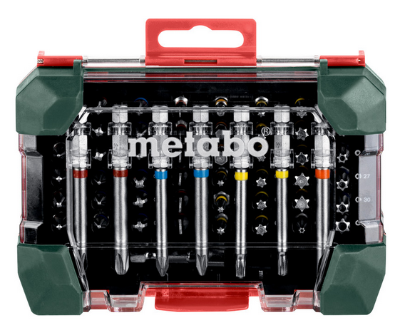 29-częściowy zestaw końcówek, bitów SP 626710000 METABO zawiera elementy wykonane ze stali chromowanej-wandowej (S2), które zostały rozróżnione barwnym oznaczeniem - ułatwienie szybkiej lokalizacji/rozróżnienia poszukiwanej końcówki. W skład zestawu 626710000 METABO (prócz eleganckiego pudełka wykończonego barwą producenta) wchodzi również adapter magnetyczny, ułatwiający szybką wymianę bitów.