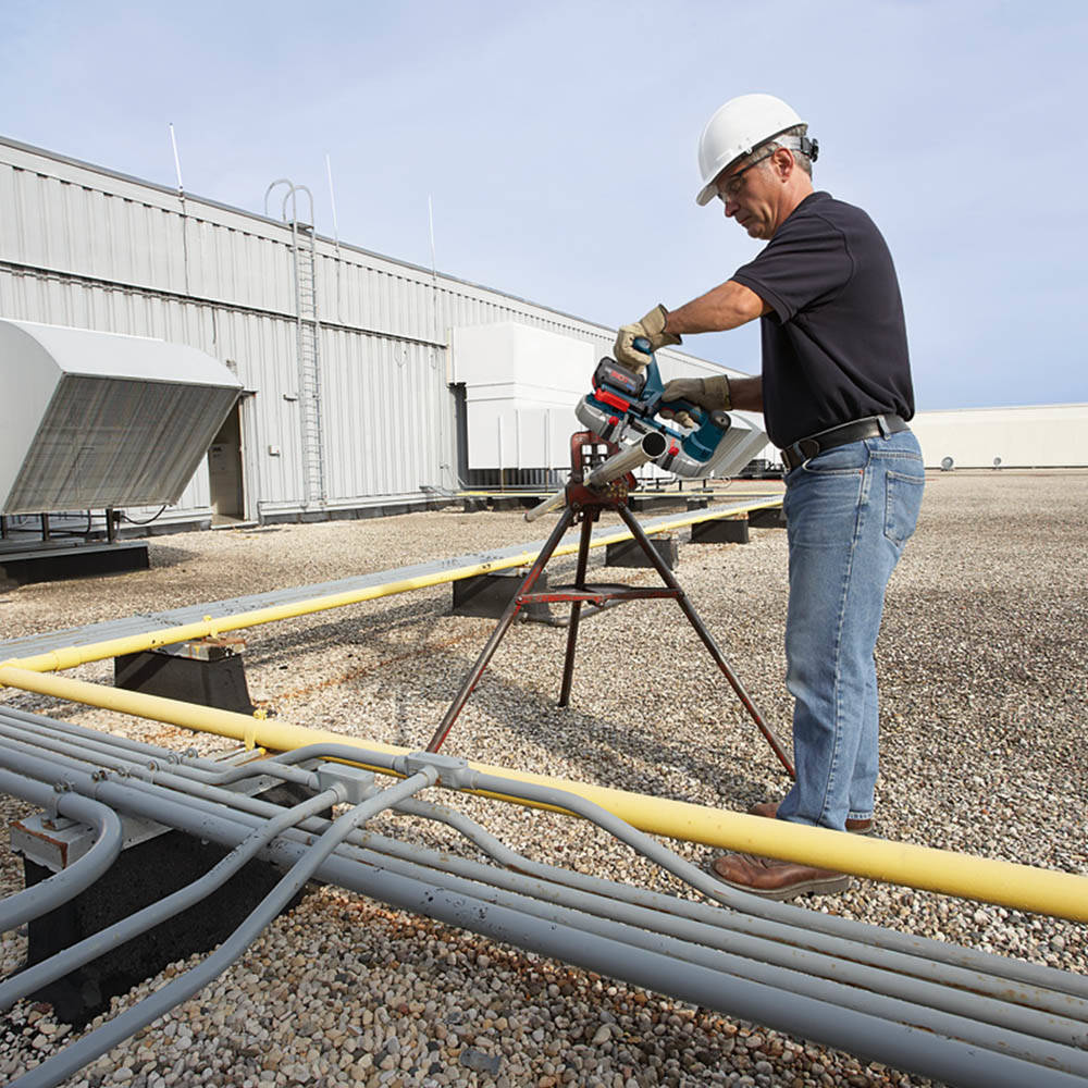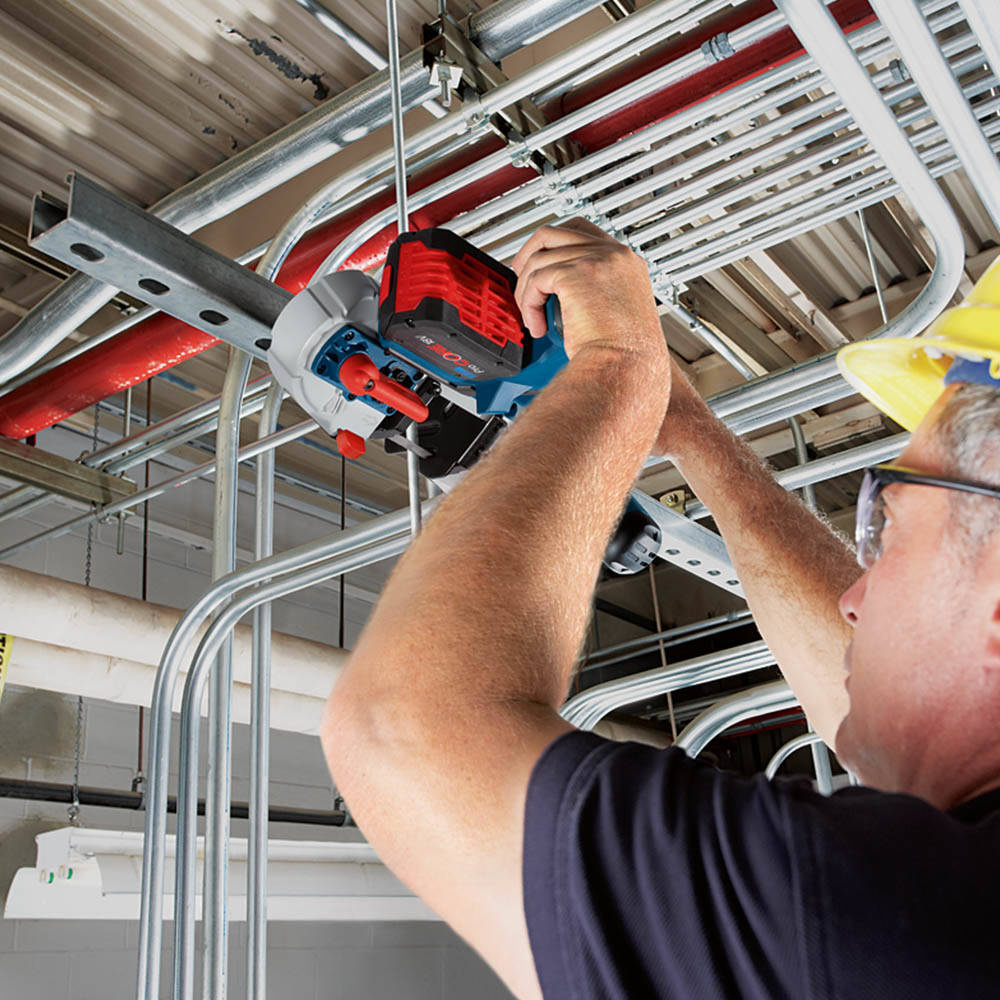Pilarka taśmowa Bosch GCB 18V-63 to elektronarzędzie przeznaczone do cięcia różnego rodzaju metalowych elementów. Zaletą pilarki taśmowej jest fakt, że podczas cięcie nie występuje efekt iskrzenia. Materiał, który powstaje po cięciu to metalowe, nieiskrzące wióry. Pilarka taśmowa sprawdzi się przy docinaniu elementów wszędzie tam, gdzie nie ma dostępu do zasilania sieciowego. Ponadto ruchów operatora nie ogranicza płacący się pod nogami kabel. Pilarkę taśmową z powodzeniem można również wykorzystać przy docinaniu elementów z tworzywa oraz drewna. Swoje zastosowanie znajdzie m.in w warsztatach ślusarskich, wśród monterów, w przydomowych warsztatach i innych. Bosch GCB 18V-63 charakteryzuje się m.in beznarzędziową wymianą taśmy/brzeszczotu.