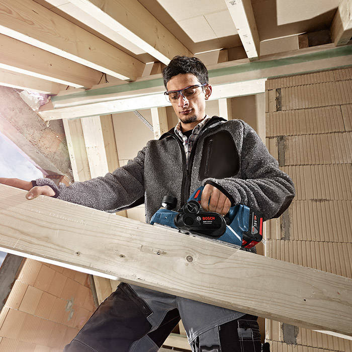 Strug Bosch GHO 18 V-LI to profesjonalne narzędzie do obróbki elementów drewnianych, cechuje się niezwykłą dokładnością i wyjątkowo małą wagą (tylko 2,6 kg). Wysoką jakość obróbki drewna umożliwiają precyzyjnie osadzone ostre i bardzo trwałe noże wykonane z węglików spiekanych (HM). Rowki typu V znacznie ułatwiają fazowanie przy zróżnicowanej głębokości, a System Click & Clean będący nieodłączną częścią modelu GHO 18 V-LI, daje potrójną korzyść. Poprzez bezpośrednie odprowadzenie pyłu zapewnia lepszą widoczność, chroni przed wdychaniem niebezpiecznych substancji znajdujących się w pyle, zdecydowanie wydłuża żywotność narzędzia i osprzętu.