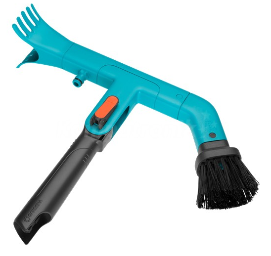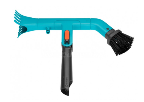 • Sprężyste włosie z jednej strony i dwie solidne skrobaczki z wytrzymałego tworzywa sztucznego z drugiej umożliwiają skuteczne czyszczenie. Do czyszczenia rynien można także użyć wody dzięki zintegrowanemu podłączeniu Original GARDENA System, które umożliwia proste podłączenie węża ogrodowego.