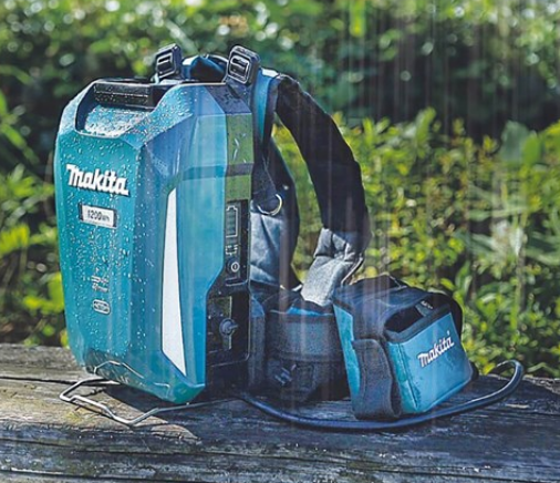 Plecak - przenośna stacja zasilająca MAKITA PDC1200A01. Napięcie: 18 V x 2 / 40 V Maks. Pojemność energetyczna: 1206Wh. Pojemność akumulatora: 33,5 Ah. Waga 10,4 kg. Zawiera uprząż, ładowarkę i akumulator adapter (18 V x 2).