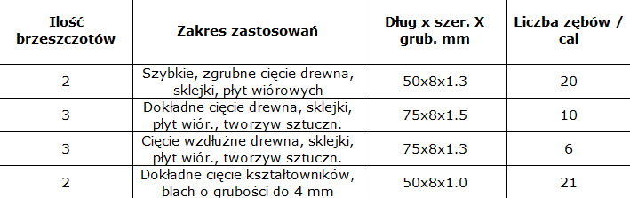 - Liczba brzeszczotów w zestawie: 10 szt
