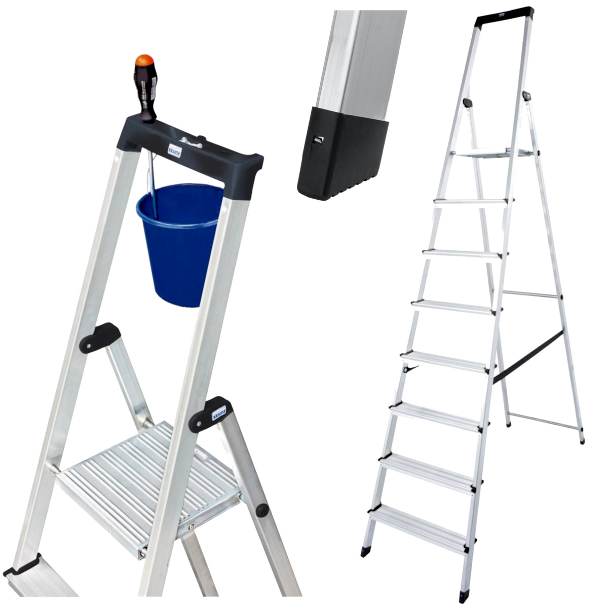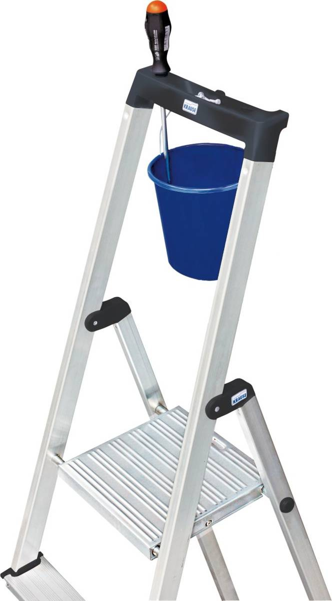- Drabina wolnostojąca 8 SOLIDY 126269 KRAUSE. Mała półka, Hak na wiadro. Pałąk bezpieczeństwa. Stalowa platforma o szerokości 250 mm. 6-nitowe połączenie stopni z podłużnicami. Stopki antypoślizgowe. Wysokość robocza 3,7 m.