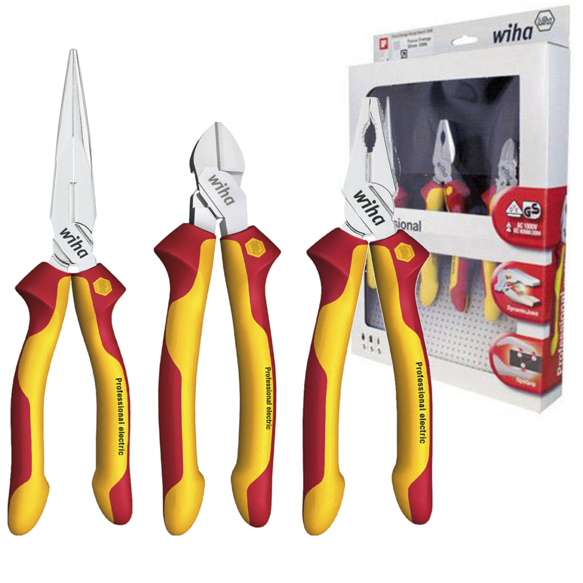 Zestaw szczypiec 1 PROF ELECTRIC WIHA 26852 nadaje się do elementów pod napięciem, gdzie podczas pracy na pierwszym miejscu znajduje się bezpieczeństwo użytkownika. Zestaw szczypiec Professional electric stanowi doskonałe wyposażenie podstawowe dla elektryków ceniących sobie komfort pracy. Szczypce półokrągłe z wyjątkowo długą główką, bez problemu docierają do głęboko położonych elementów. Szczypce uniwersalne umożliwiają bezpieczne chwytanie bez przesuwania chwytanego elementu we wszystkich możliwych sytuacjach roboczych. Dołączone do zestawu szczypce do cięcia bocznego doskonale nadają się do cięcia drutów miękkich i twardych. Specjalna konstrukcja przegubu DynamicJoint® redukuje również nakład siły potrzebnej do cięcia. Ponadto ergonomiczne rękojeści wielokomponentowe z zabezpieczeniem przed ześliźnięciem, umożliwiają komfortową i bezpieczną pracę. Dzięki chromowanej główce - szczypce WIHA 26852 są zabezpieczone przed rdzewieniem. Szczypce WIHA 26852 poddawane są kontroli jednostkowej zgodnie z międzynarodową normą IEC 60900 i umożliwiają bezpieczną pracę w obszarze elementów znajdujących się pod napięciem do 1000 V AC.