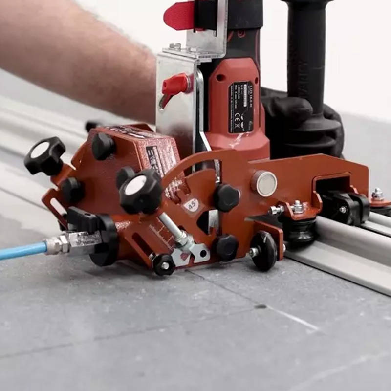 Wózek do cięcia płyt wielkoformatowych RAIMONDI-433PWROHEUD Raimondi to profesjonalne narzędzie - wózek do cięcia wyposażony w półuniwersalny system mocowania kompatybilny z większością szlifierek kątowych. Przystawka RAIMONDI-433PWROHEUD pozwala na tworzenie cięć w zakresie 30°, 45°, 47°, 70°, 90°, 180° do głębokości 20 mm przy pomocy szlifierek kątowych 115 oraz 125 mm.