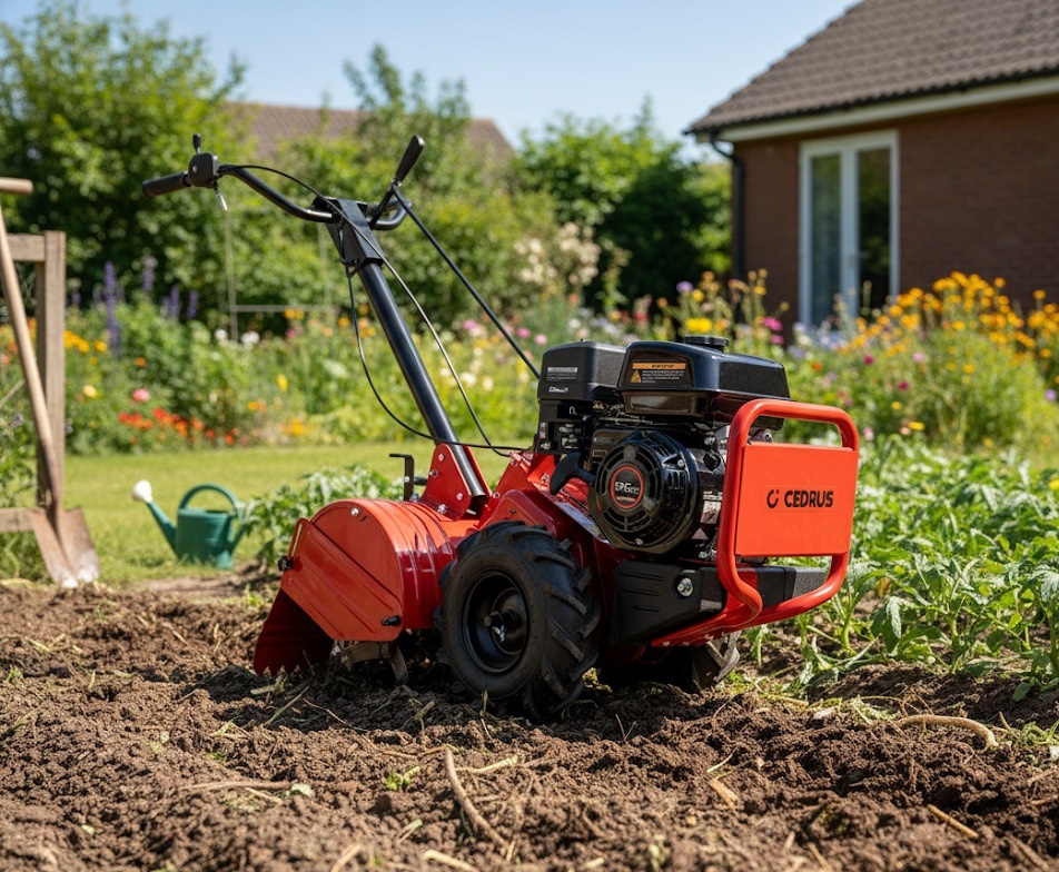 Glebogryzarka Cedrus GL03PRO to zasilana silnikiem spalinowym CR950 (pojemność silnika 208 cm3) marki Briggs&Stratton - glebogryzarka o mocy 6,5 KM z szerokością roboczą 45 cm. Cedrus GL03PRO posiada zbiornika paliwa 3,6 l oraz opcję napędu w dwóch kierunkach (naprzód oraz do tyłu), dzięki czemu pozwala na sprawną pracę i komfortową pracę na powierzchniach nawet do 2500 m2.