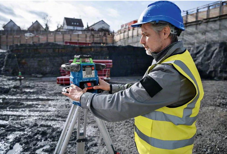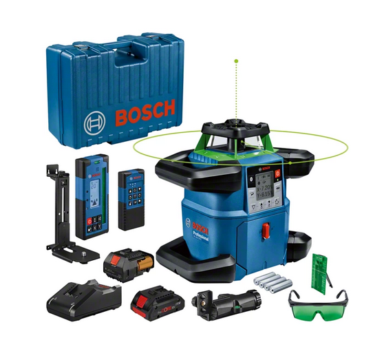 Laser obrotowy Bosch GRL 650 CHVG Professional to wytrzymały laser obrotowy z funkcją komunikacji przez Bluetooth, który umożliwia wykonanie prac niwelacyjnych na budowie z jeszcze większą precyzją i wydajnością. Zastosowanie zielonej wiązki laserowej zapewnia najlepszą widoczność w różnych warunkach oświetleniowych podczas dnia, nocy, przy słabym oraz przy silnym naświetleniu słonecznym. Laser obrotowy Bosch GRL 650 jest solidnie wykonany i może być używany w trudnych warunkach pracy na miejscach budowy/remontów oraz przy złej pogodzie, bez szwanku przetrwa upadek ze statywu do wysokości 2 m. Narzędzie jest zabezpieczone przed pyłem, kurzem i wodą dzięki zabezpieczeniu o stopniu ochrony IP68.