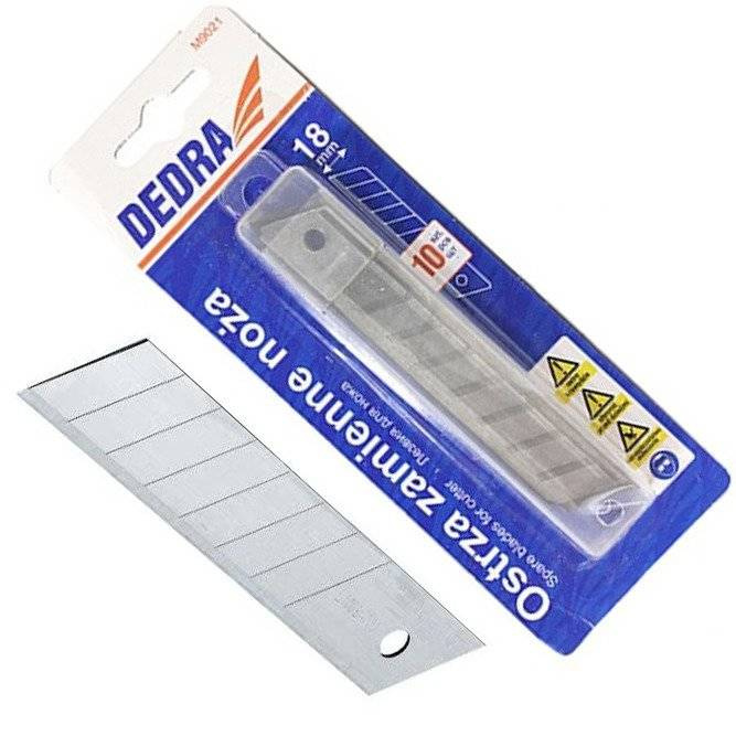 - Dedra M9021 to ostrza wymienne łamane do noży, o szerokości 18 mm. Zestaw zawiera 10 sztuk ostrzy.