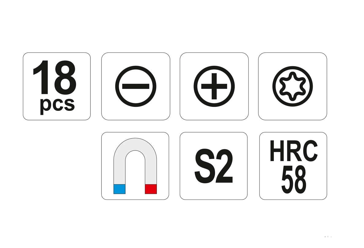 - Zestaw wkrętaków ręcznych YATO YT-25982 Materiał: Stal o oznaczeniu S2. Typy końcówek: płaskie, krzyżowe, torx. Ilość sztuk wkrętaków: 18. Kod produktu: YT-25982