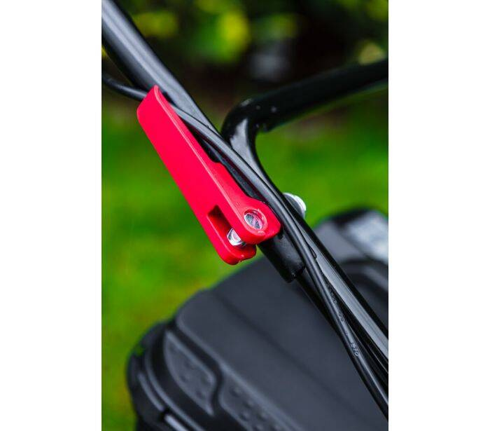 • Wygodny uchwyt zintegrowany z obudową pozwalający przenieść kosiarkę w razie konieczności