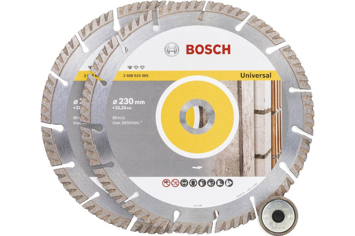 - Zestaw 2 segmentowych tarcz diamentowych Bosch 06159975H5 o średnicy 230 mm + nakrętka SDS. Ilość tarcz w zestawie: 2 tarcze. Średnica tarcz: 230 mm. Średnica otworu: 22,23 mm. Szerokość cięcia: 2,3 mm. Wysokość segmentu: 10 mm