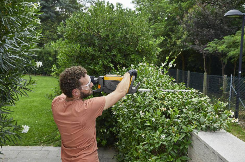 Sekator akumulatorowy SHT 500 AE to zasilane akumulatorowo - bezprzewodowe nożyce do żywopłotu, które umożliwiają komfortowe i sprawne cięcie - bez plątających się kabli i oparów benzyny. Narzędzie pozwala na sprawną pracę do 50 minut na zasilaniu akumulatorowym. Urządzenie wyposażone jest w 58-centymetrowy, który skutecznie radzi sobie z żywopłotem i gałęziami. Uchwyt narzędzia jest regulowany w zakresie 180 stopni - obracana rączka pozwala zachować naturalną pozycję nadgarstka i ramienia, poprawiając komfort - uchwyt ustawiany w trzech różnych pozycjach. Prosty w obsłudze i intuicyjny panel sterowania składający się przycisków ułatwia obsługę narzędzia. Nożyce Stiga SHT 500 AE posiada wbudowaną osłona końcówki ostrza, dzięki czemu zapobiega uszkodzeniom ścian i chodników podczas pracy z roślinami, umiejscowionymi przy różnych obiektach.