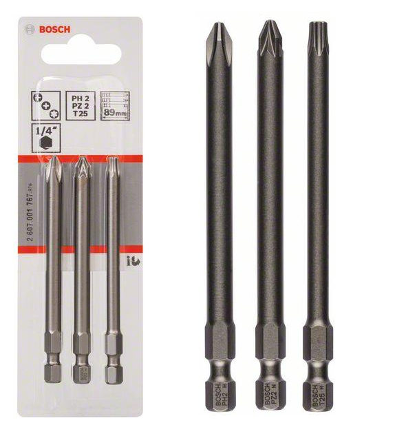 - Końcówki wkręcające Bosch Extra Hart - zestaw 3 sztuk. Długość: 89mm. Kod produktu: 2607001767