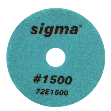 Sigma 72E1500 to dysk do wykańczania krawędzi płytek. Posiada gradację/ziarnistość na poziomie P1500, dzięki czemu z krawędź płytki po procesie szlifowania padem jest bardzo gładka. Dysk może być zamocowany na krążek Sigma ART-72D za pośrednictwem rzepu.