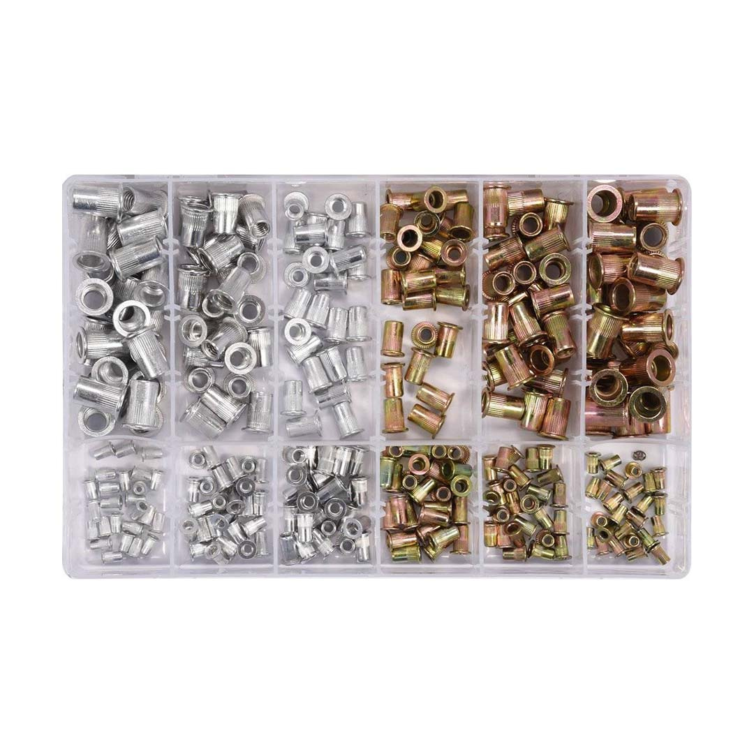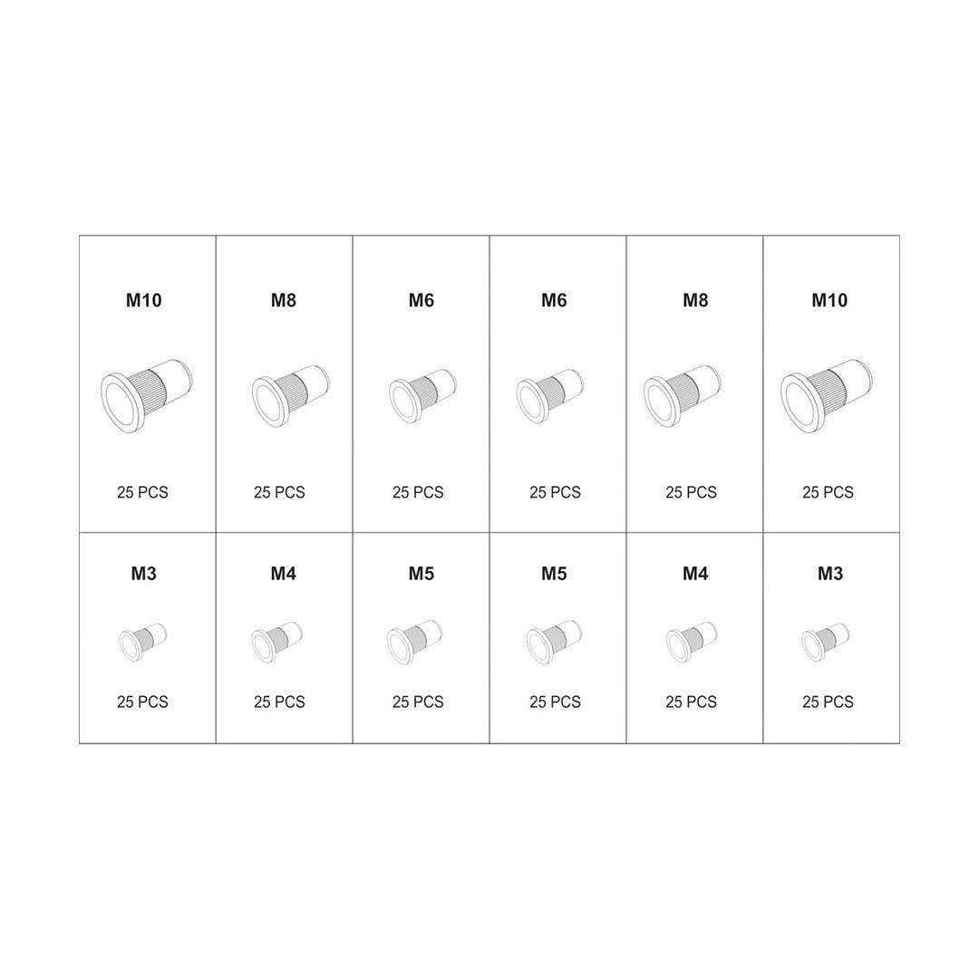 Zestaw nitonakrętek Yato YT-36480 to zestaw składający się z 300 nitonakrętek, do użytku z nitownicą ręczną. W skład zestawu Yato YT-36480 wchodzą nitonakrętki w rozmiarach od M3 do M10 z podziałem na nitonakrętki stalowe oraz aluminiowe.