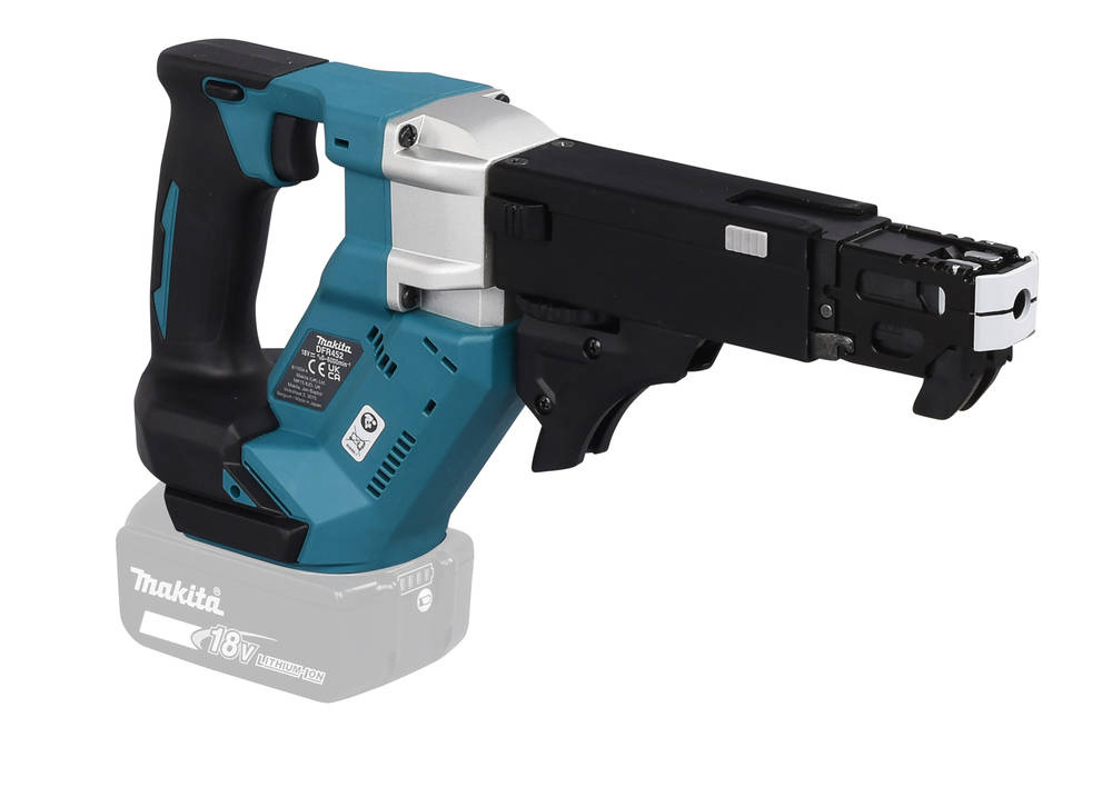 Makita DFR452Z to akumulatorowa, bezszczotkowa wkrętarka do suchej zabudowy. Dzięki prowadnicy do wkrętów mamy możliwość szybkiego przykręcania wkrętów bez konieczności przytrzymywana ich. Dołączony do zestawu hak pozwala na zawieszenie urządzenia na pasie roboczym, dzięki czemu mamy wolne obie ręce. Bez narzędziowa regulacja długości wkrętów w prosty sposób pozwoli dopasować nam urządzenie do naszych potrzeb. Włącznik zmiany kierunku obrotów umieszczony w takim miejscu, żeby można było obsługiwać urządzenie jedną ręką. Funkcja PUSH & DRIVE pozwala znacznie zaoszczędzić energię podczas ciągłej pracy.