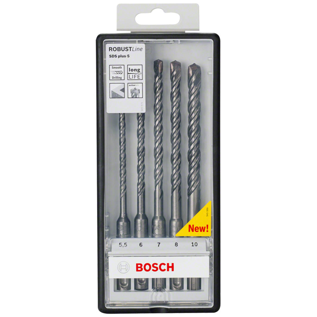 - Bosch Bosch Robust Line 2607019929 to 5-częściowy zestaw wierteł do młotów SDS-plus-5. Uchwyt: SDS-plus. W zestawie wiertła o śr.: 5,5 6, 7, 8, 10 mm, dł. roboczej 100 mm. Do wiercenia w murze, betonie i betonie zbrojeniowym.